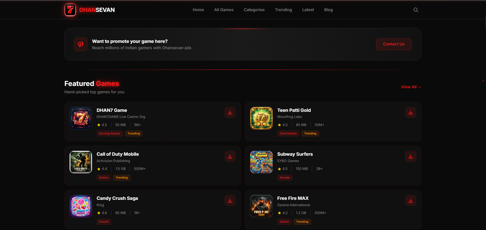 A comprehensive online gaming portal and APK download platform in India, thoroughly optimized for SEO and high performance.